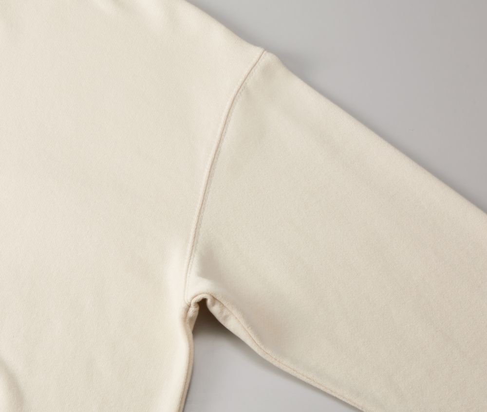 ほどよいやわらかさがありながら、薄すぎないしっかりとした厚みのアイテムです。また、ざっくりとした着こなしが楽しめるよう、着用時の絶妙な袖のルーズさを演出させるサイズ設計で仕立てています。